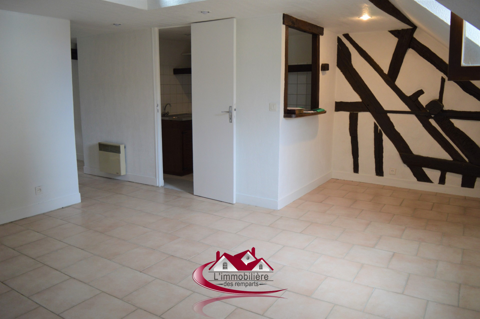 Au coeur de Houdan, Appartement T2bis comprenant séjour avec une grande mezzanine de 11m² au sol pouvant accueillir un bureau ou une chambre d'appoint, Cuisine, Salle de bains et une chambre avec rangements.