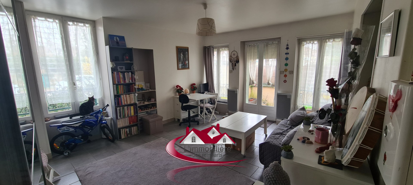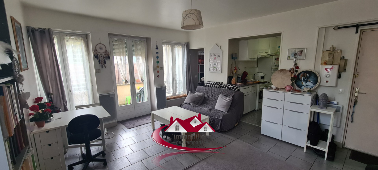 Houdan - Toutes commodités à pied - Appartement 2 pièces en rez-de-chaussée d'une petite résidence de 8 logements comprenant : Séjour lumineux donnant sur terrasse, cuisine aménagée, salle de douche avec wc, chambre avec placards. Charges de copropriété annuelles : 700 € environ.