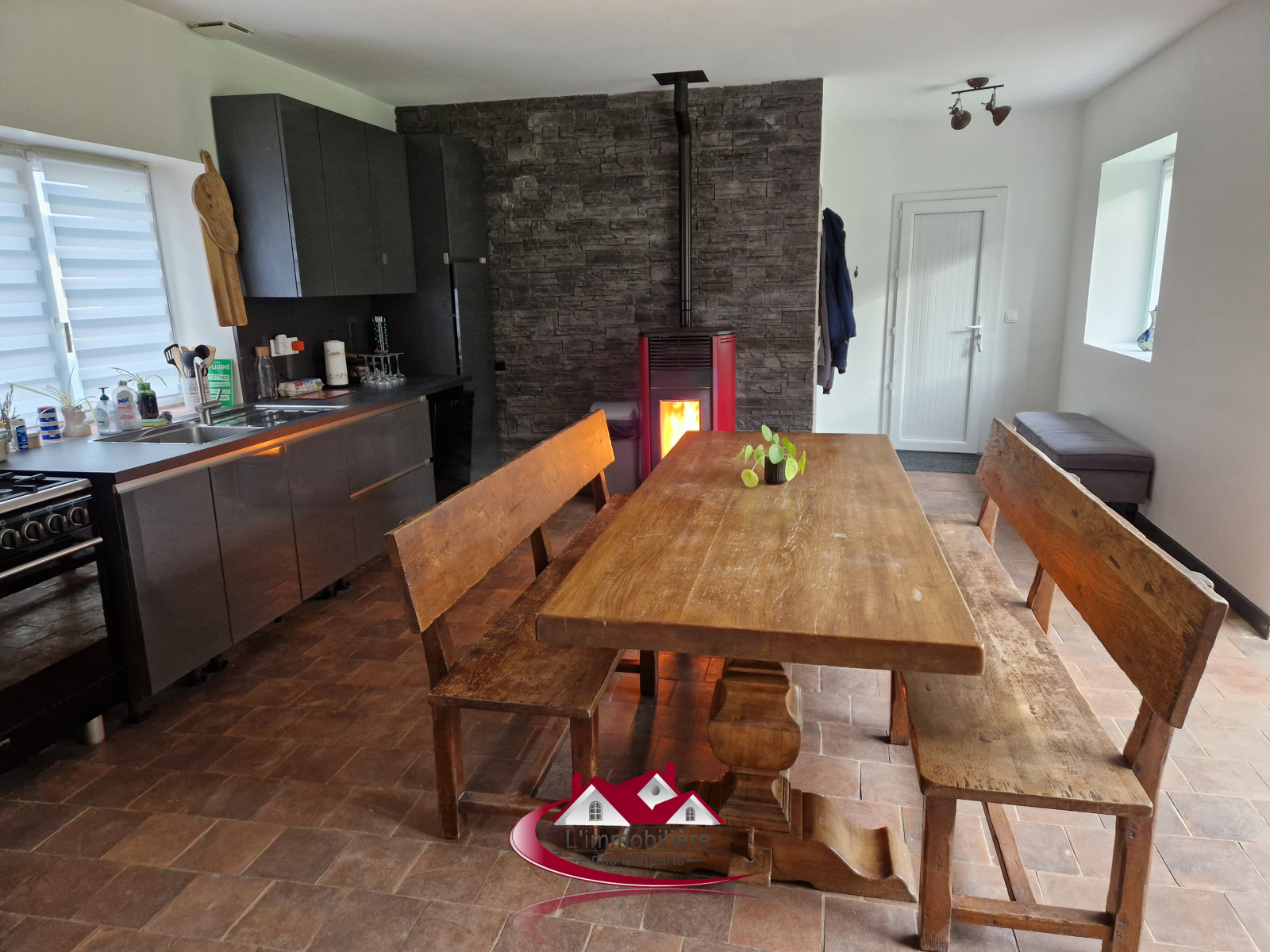 Village de Bû - Commerces et écoles à pied - Maison ancienne d'environ 140 m² comprenant : Au rez-de-chaussée : grande cuisine dinatoire aménagée avec poêle à granules, salon traversant, salle d'eau avec WC, buanderie. A l'étage : palier desservant suite parentale avec WC et salle d'eau à terminer, deux chambres et salle d'eau à aménager. Le tout édifié sur plus de 1000 m² de terrain avec deux dépendances de 20 m² chacune env. et garage. Toiture, vitrages récents, poêle à granules.