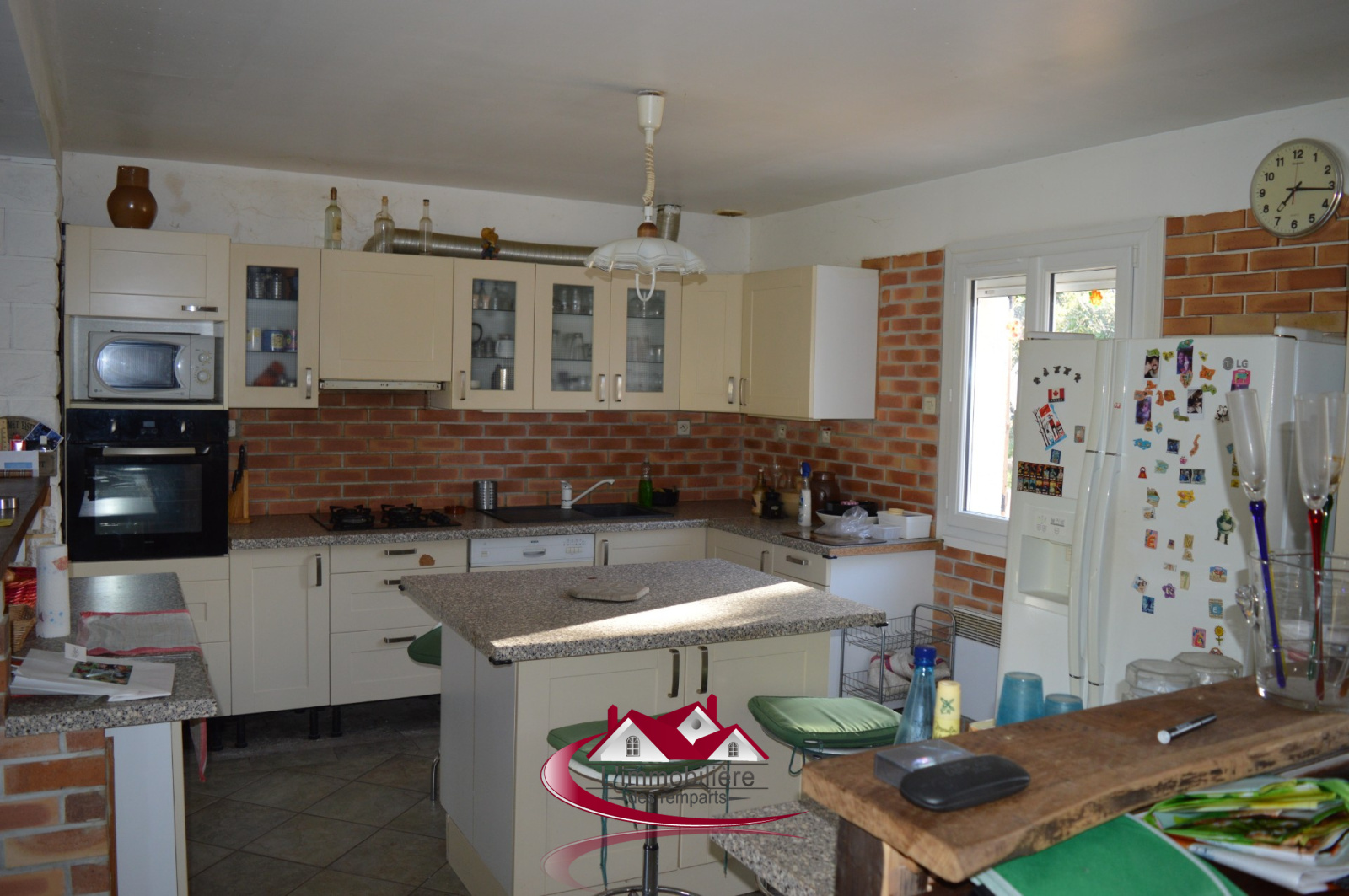 5km de la nationale12. Grande maison familiale de près de 200m² édifiée sur un terrain de 1660m². Elle se compose au rez-de-chaussée d'un séjour avec cheminée, cuisine ouverte avec îlot central, deux chambres, une salle de bains avec douche et baignoire, et wc séparés. A l'étage: une grande pièce palière, 3 chambres et une salle d'eau récente.
